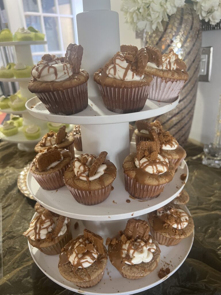 Our Biscoff Bliss Cake is a rich, spiced cake layered with smooth cream cheese frosting and finished with a generous drizzle of Lotus Biscoff cookie butter. Topped with Biscoff crumbs and cookies, this cake delivers warm, caramelized flavor in every bite. Perfectly balanced and beautifully finished, it’s a customer favorite for celebrations, gatherings, or simply indulging in something sweet.